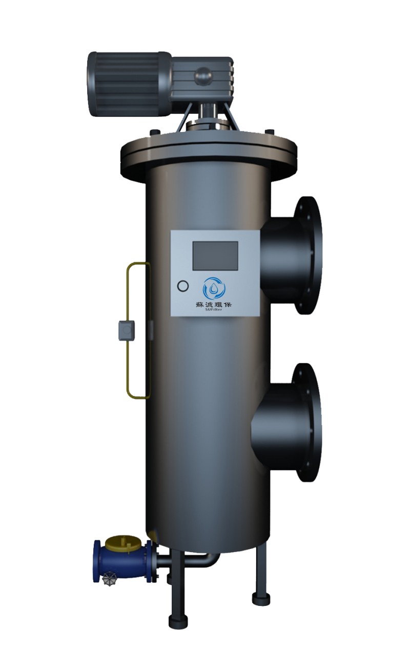 水或其他液體由全自動自清洗過濾器的進水口進入設(shè)備的機體內(nèi)部,通過過濾網(wǎng)將水或其他液體中的所需過濾雜質(zhì)攔截,過濾后的水或其他液體通過全自動自清洗過濾器的出水口排出,雜質(zhì)則滯留在濾網(wǎng)內(nèi)側(cè),隨著雜質(zhì)的積累,過濾器的進出口壓力差會隨之變大,通過設(shè)備的壓差開關(guān)檢測此數(shù)值,當(dāng)此數(shù)值達到壓差開關(guān)預(yù)設(shè)值時,壓差開關(guān)會通過傳輸線傳送信號至電控柜,電控柜再分出信號給清洗部件(轉(zhuǎn)刷或吸污口)和排污閥,此時由清洗部件對濾網(wǎng)內(nèi)側(cè)表面進行徹底清洗,再由排污閥將雜質(zhì)及部分液體從設(shè)備內(nèi)部排出,可根據(jù)首次壓差啟動間隔時間對設(shè)備的電控柜的時間控制進行設(shè)定,此后可通過時間及壓差雙重控制,對設(shè)備的清洗周期進行控制,從而雙重保證設(shè)備的清洗效果及系統(tǒng)的正常運行。